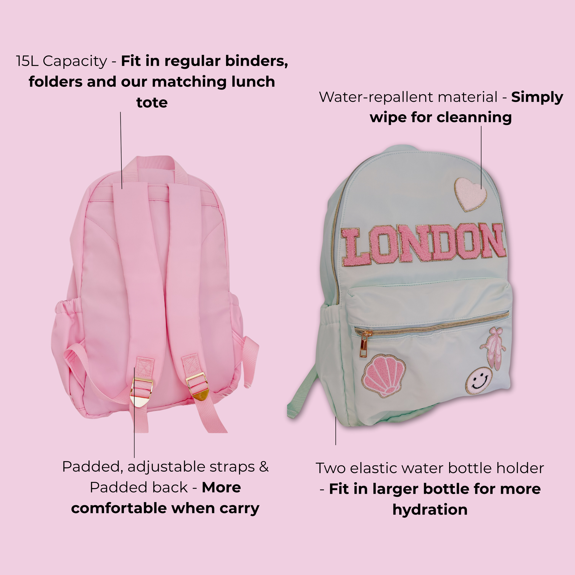 Choose your own letter patches to add the personal touch.